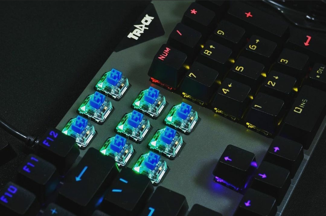 Blue switches are so-called clicky switches. With blue switches, you'll hear a click when a keystroke is registered. This comes in handy when typing, programming, and playing strategy games. Since you feel exactly when you register a key, you don't have to press the key all the way.